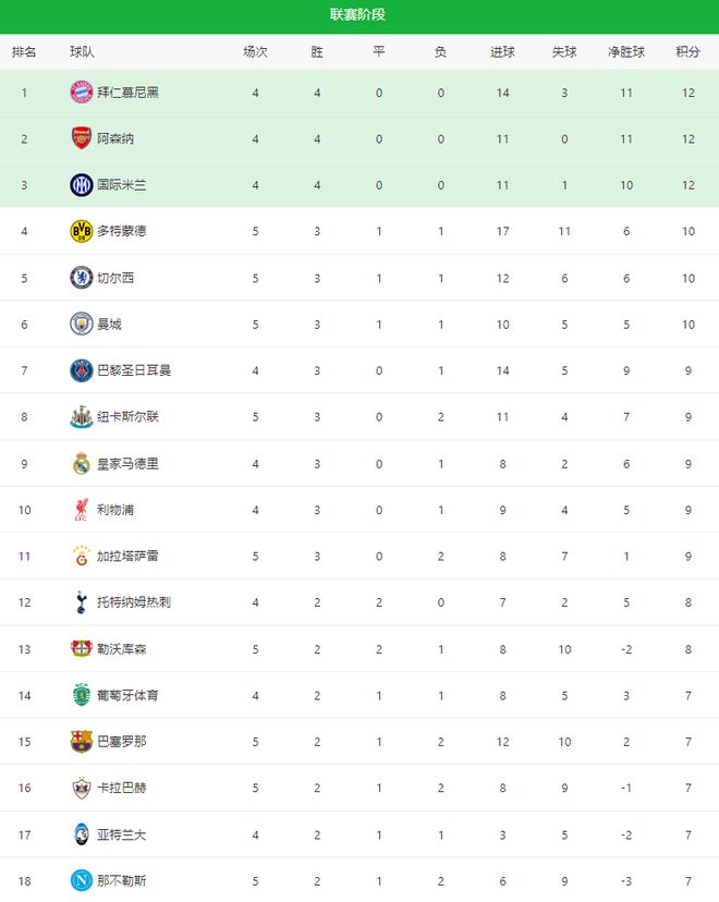 随着切尔西3-0巴萨,曼城0-2翻车,多特4-0,欧冠最新积分榜出炉